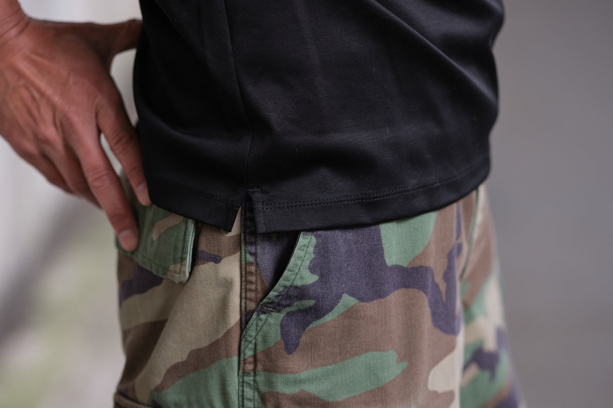 さらに肩のラインを立体的に美しく整える新設計により、Tシャツとは思えない“品格”あるシルエットを獲得。裾には控えめなサイドスリットを追加し、タックアウトしても収まりよく、さりげない洒落感を演出するなど、細部のバランスと実用性が格段に向上しました。