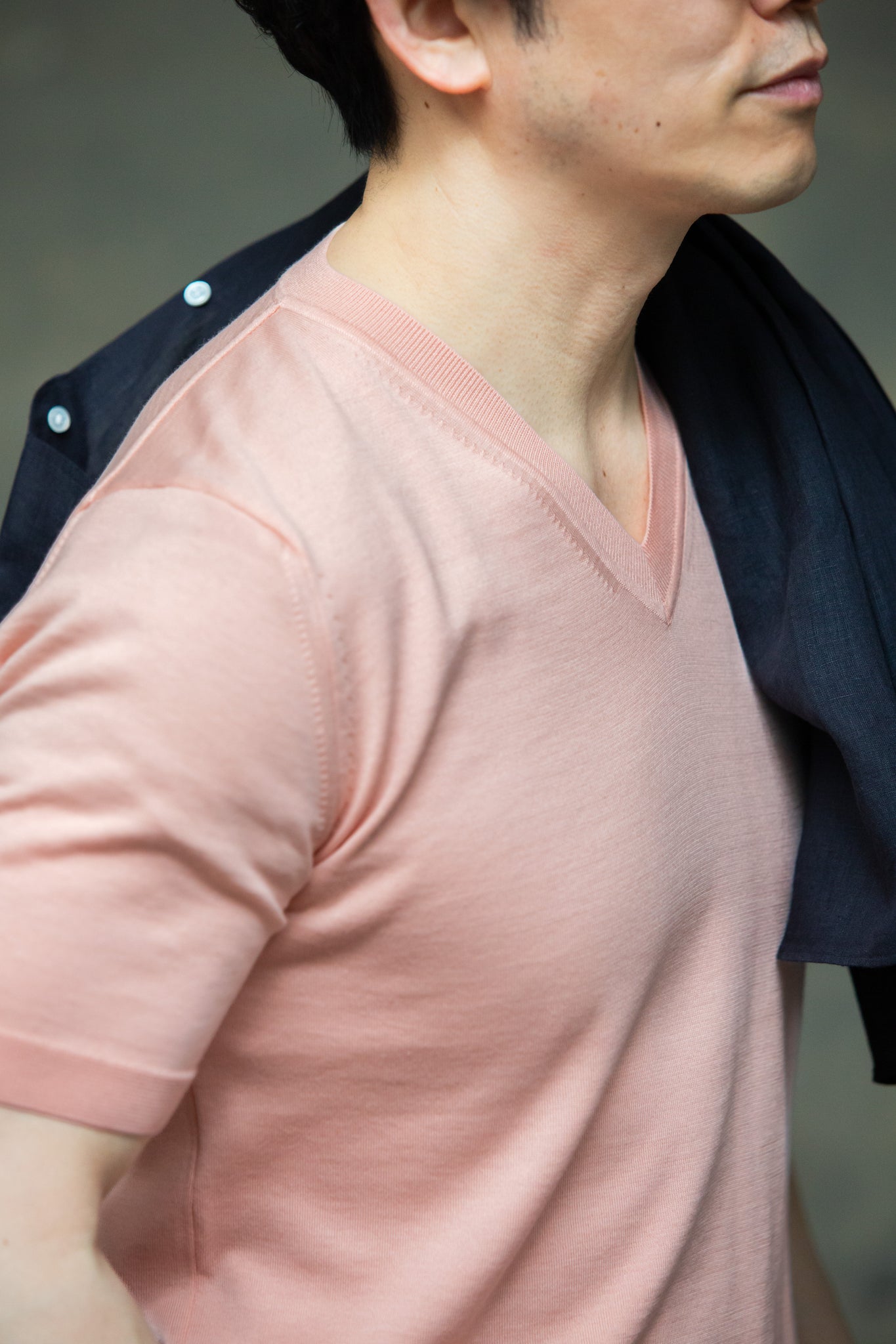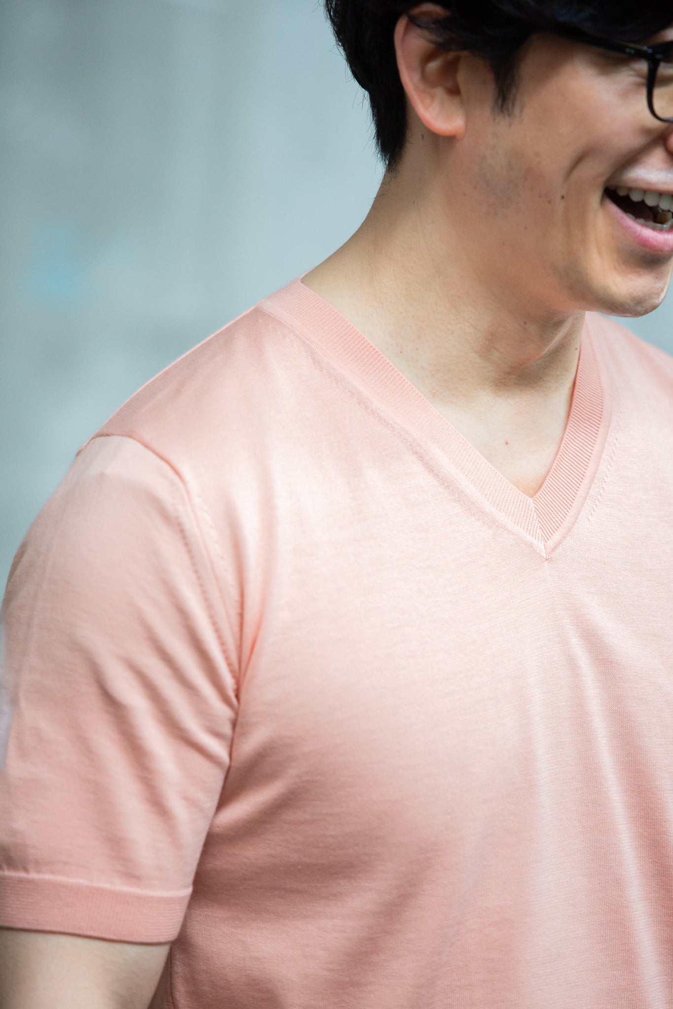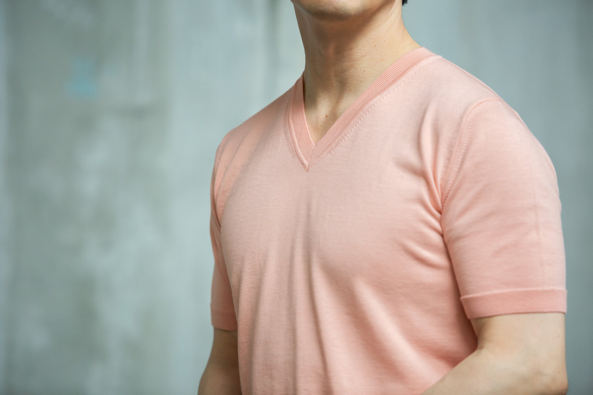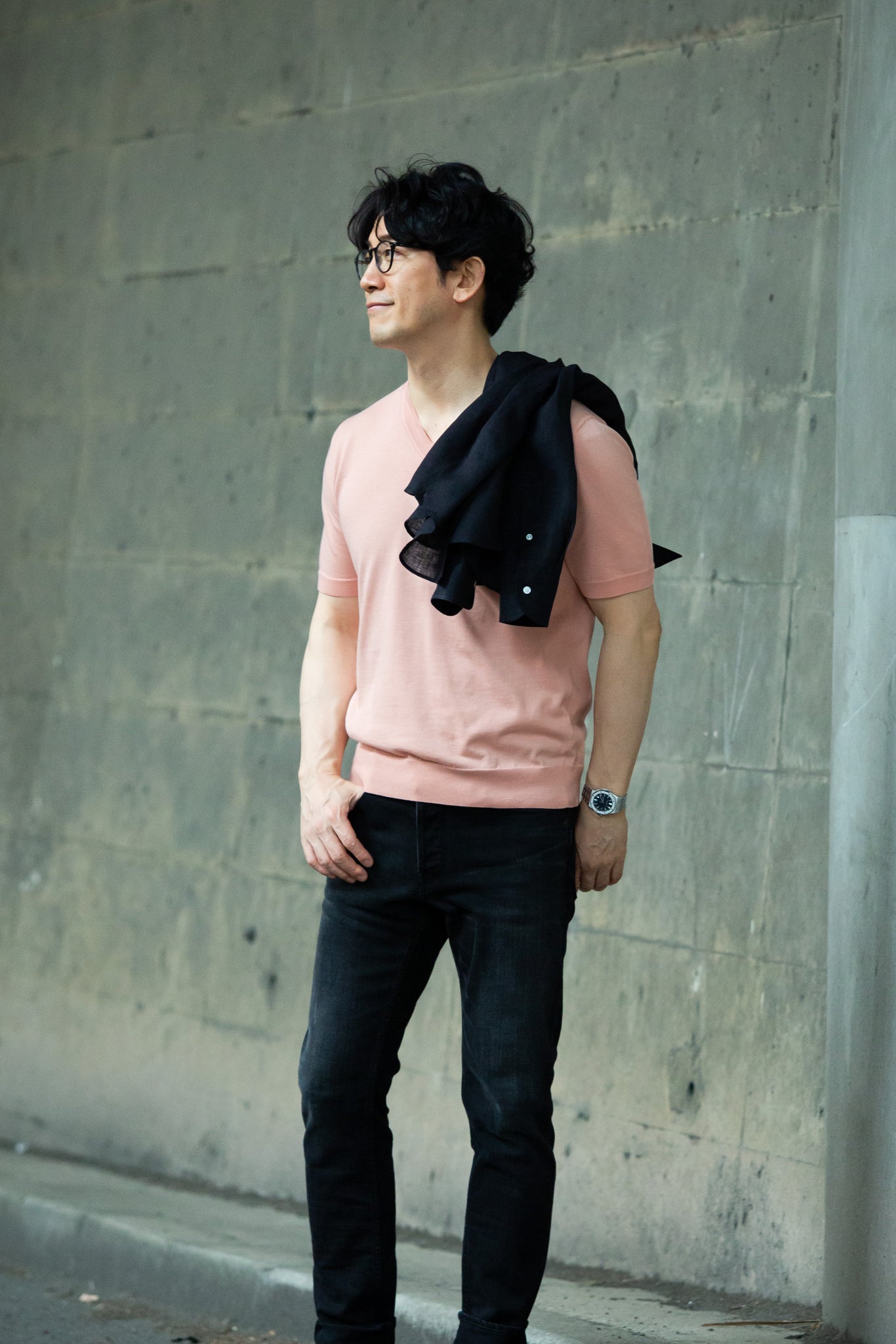 デザインはあくまでミニマル。シンプルなVネックが、大人の余裕を引き立てる。カジュアルにも、ジャケット合わせにも映える万能さで、着こなしの幅は無限です。