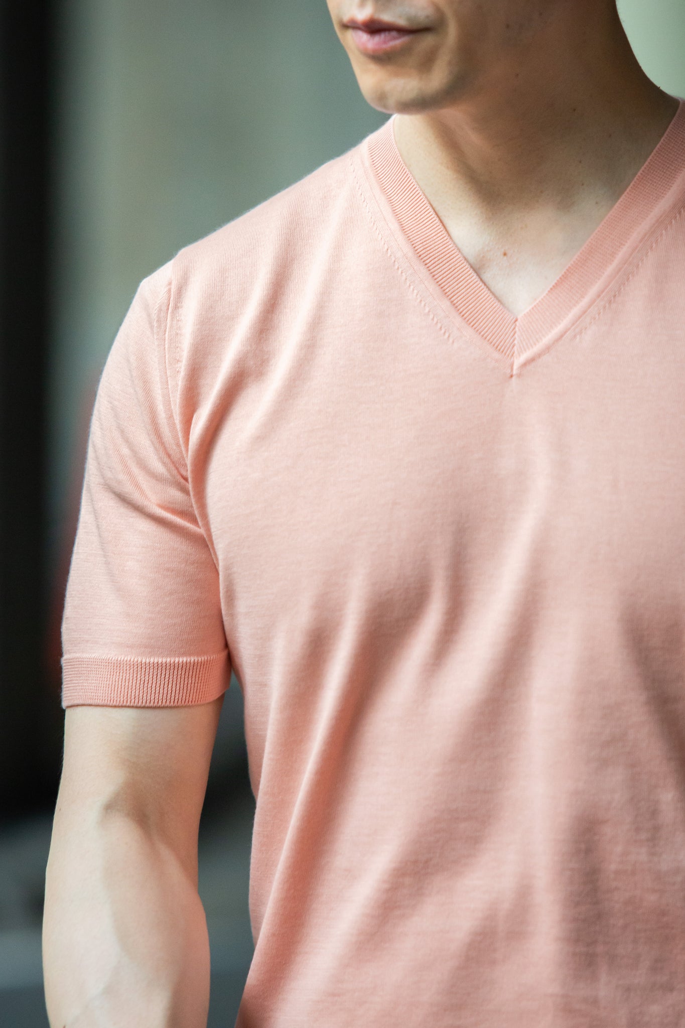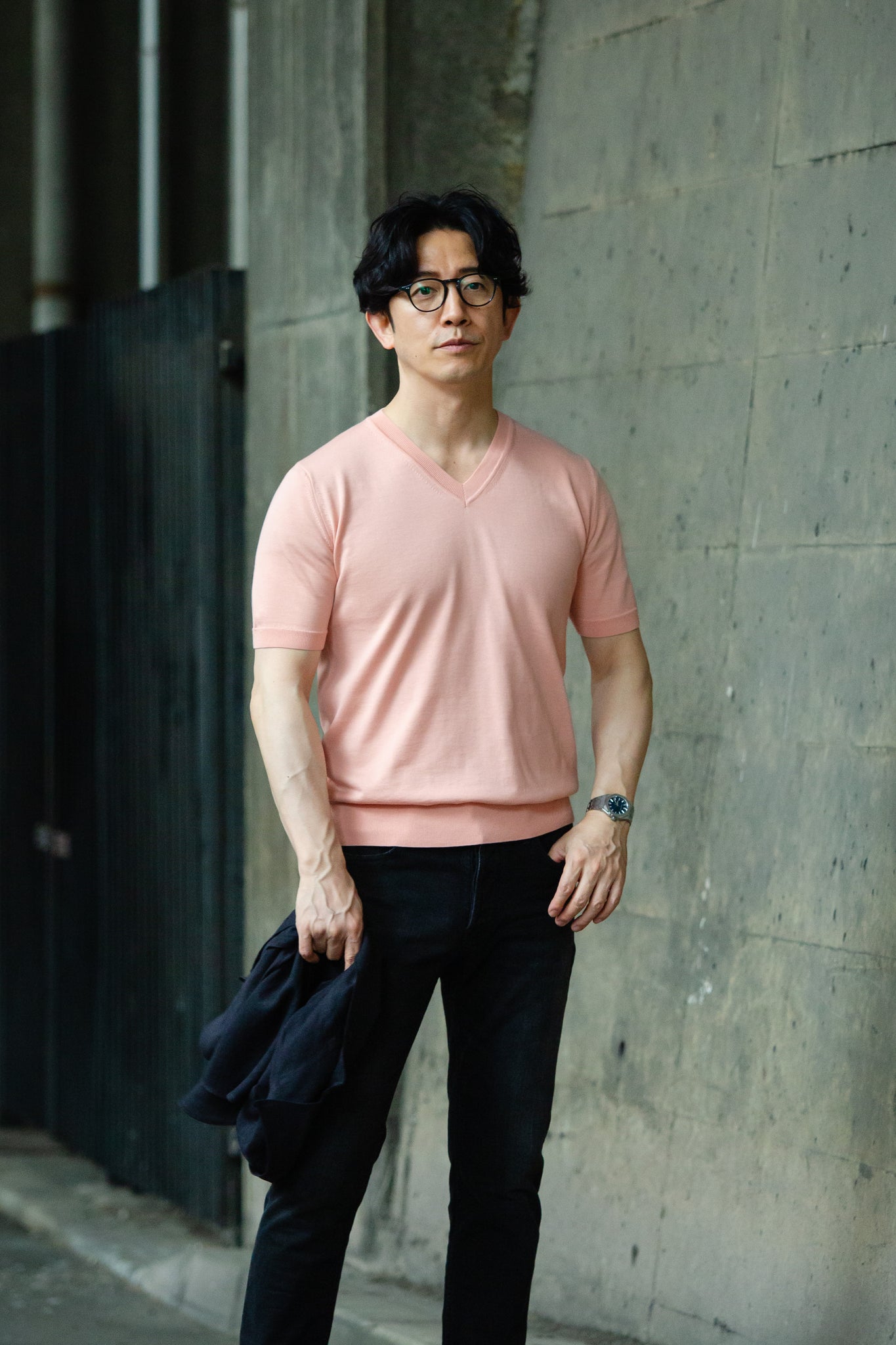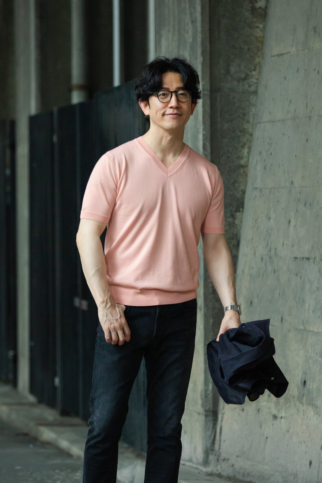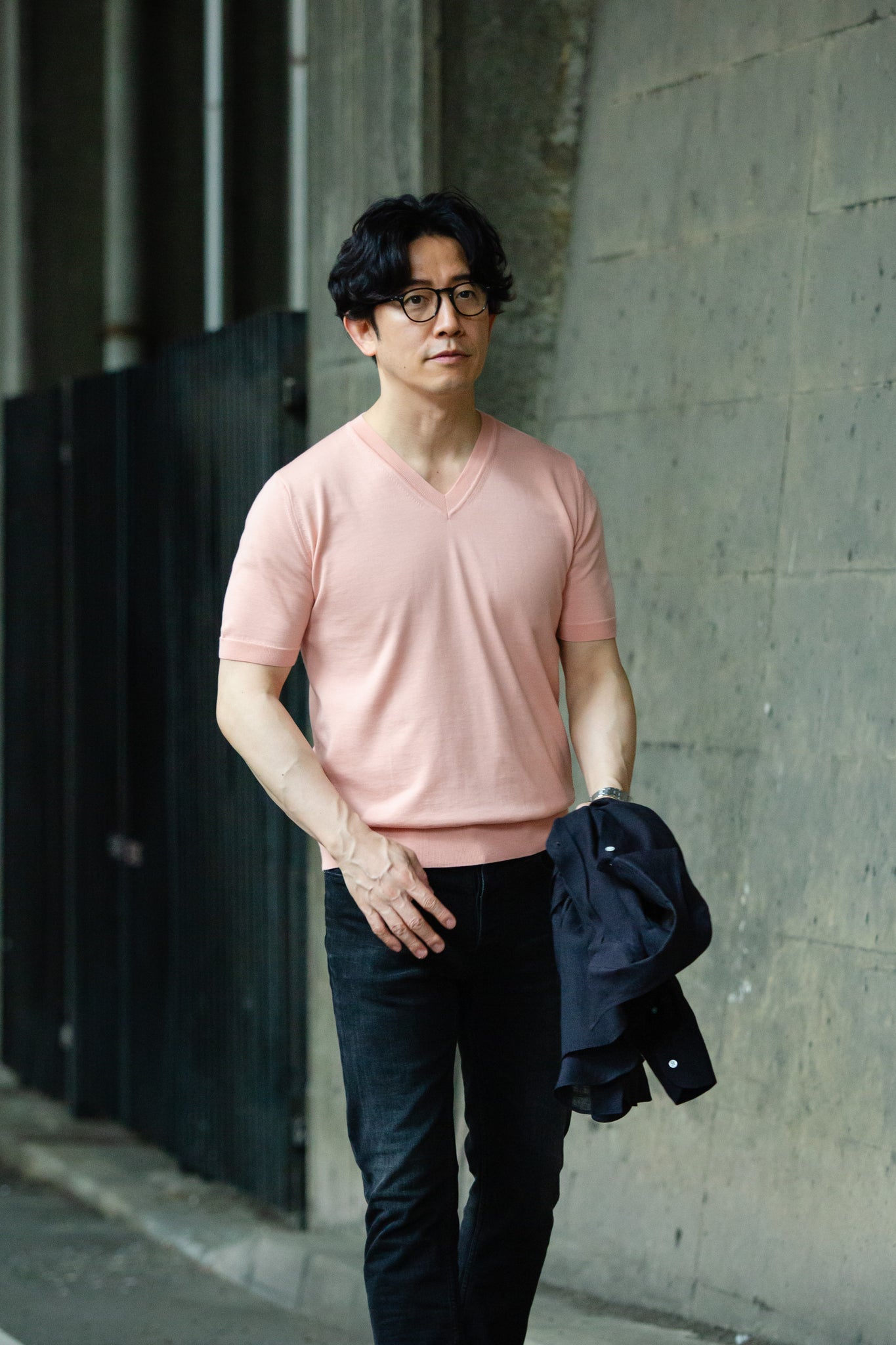 デザインはあくまでミニマル。シンプルなVネックが、大人の余裕を引き立てる。カジュアルにも、ジャケット合わせにも映える万能さで、着こなしの幅は無限です。
