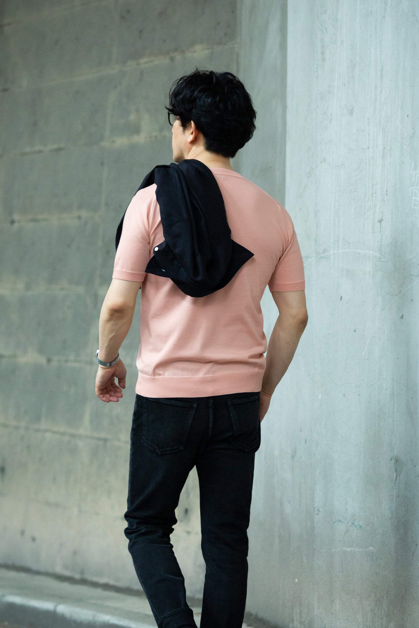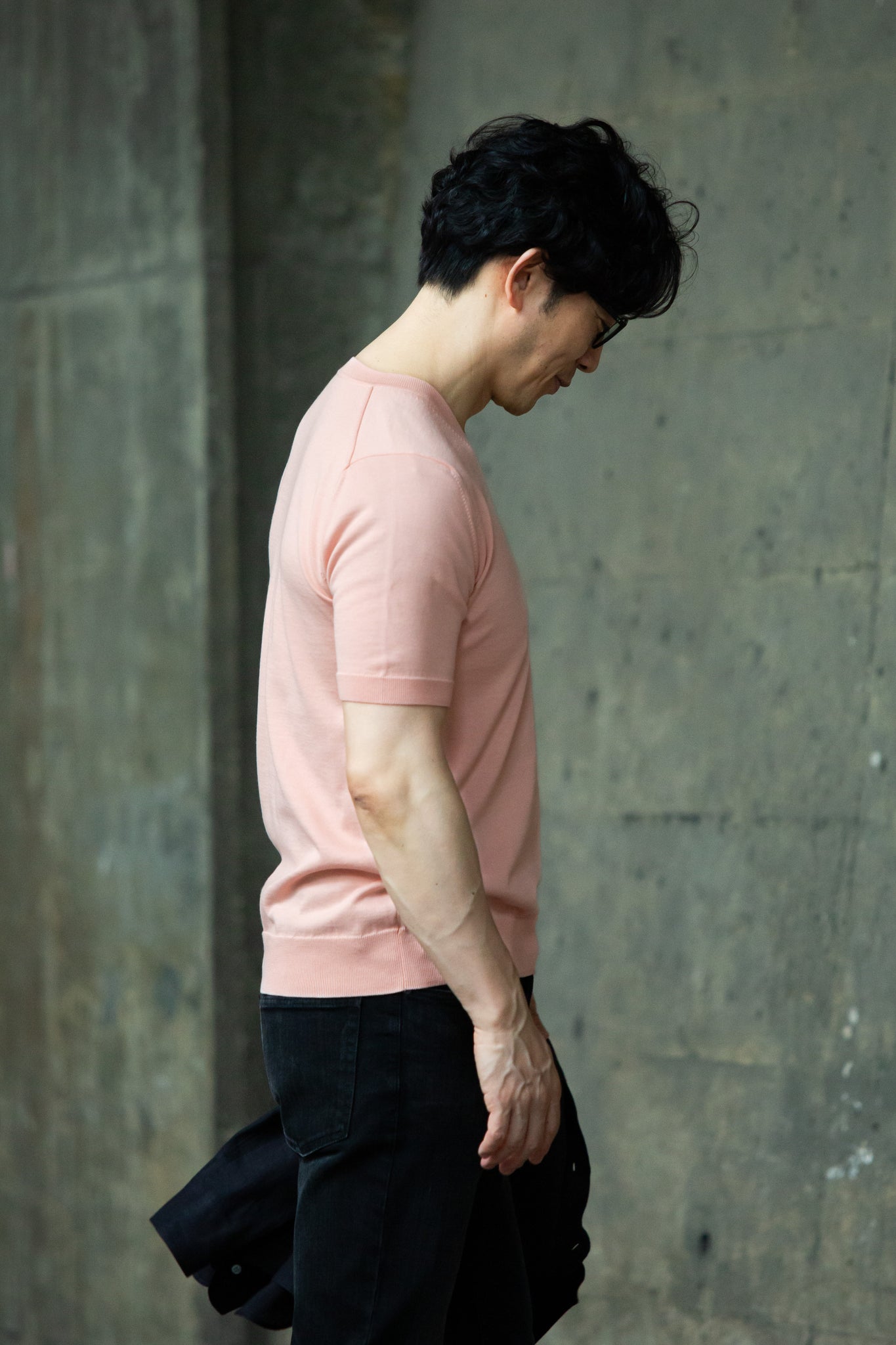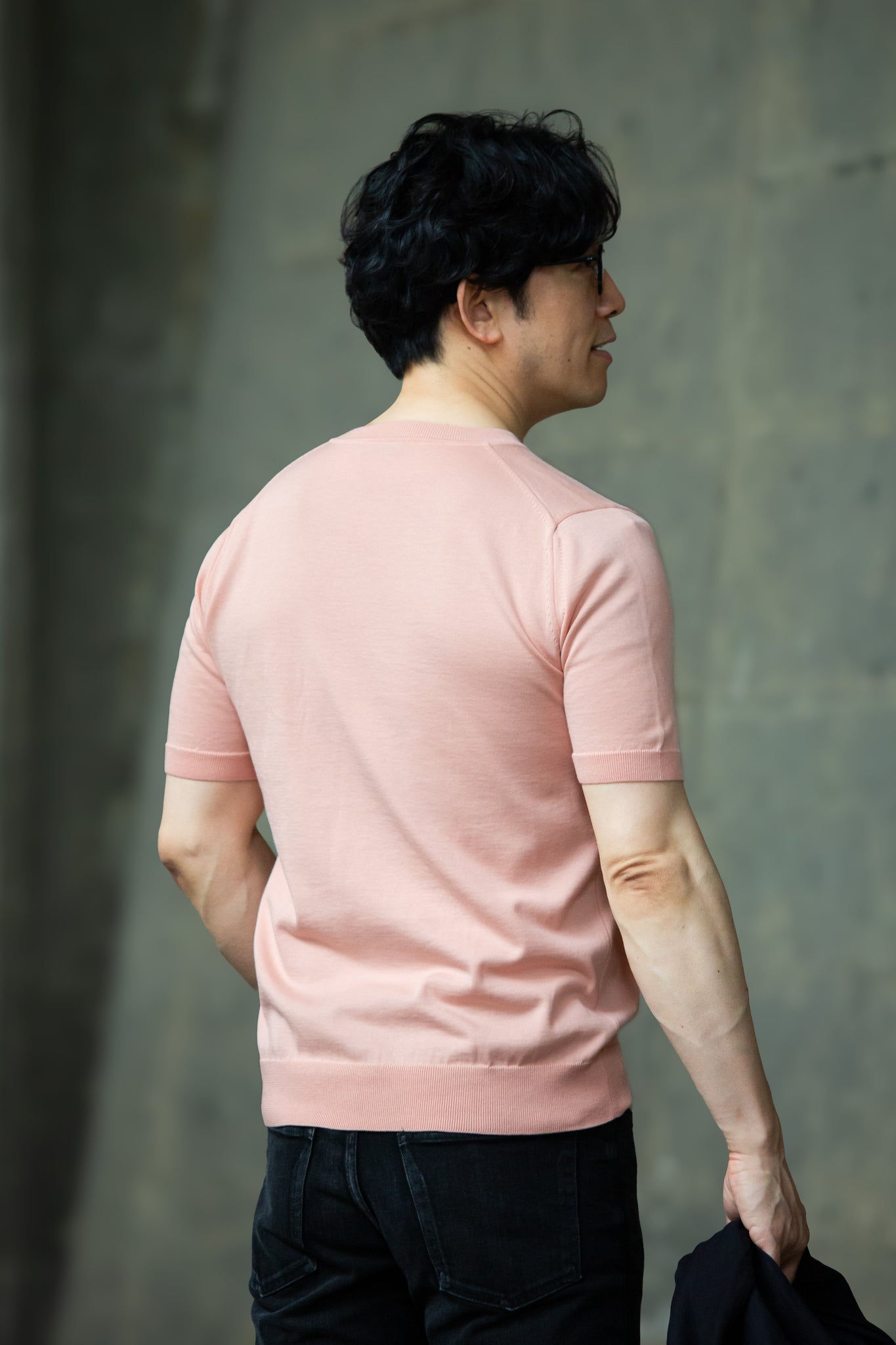 【生地:アメリカンシーアイランドコットン60/2】使用しているのは、世界でも限られた地域でしか栽培されない希少な超長綿、アメリカンシーアイランドコットン。その中でも、極細の「60番手」の糸を2本撚り合わせた“60/2(ろくまるにそう)”仕様に仕上げることで、薄く、軽やかで、しなやかなハリ感を備えた、まさにサマーニットの理想形を実現しました。
