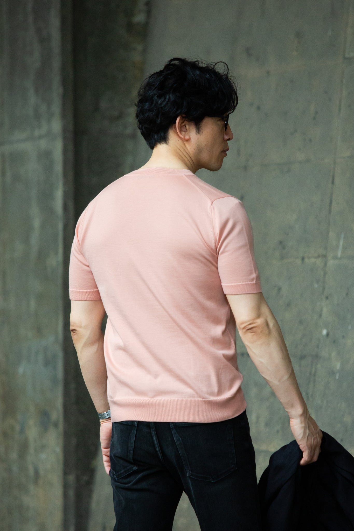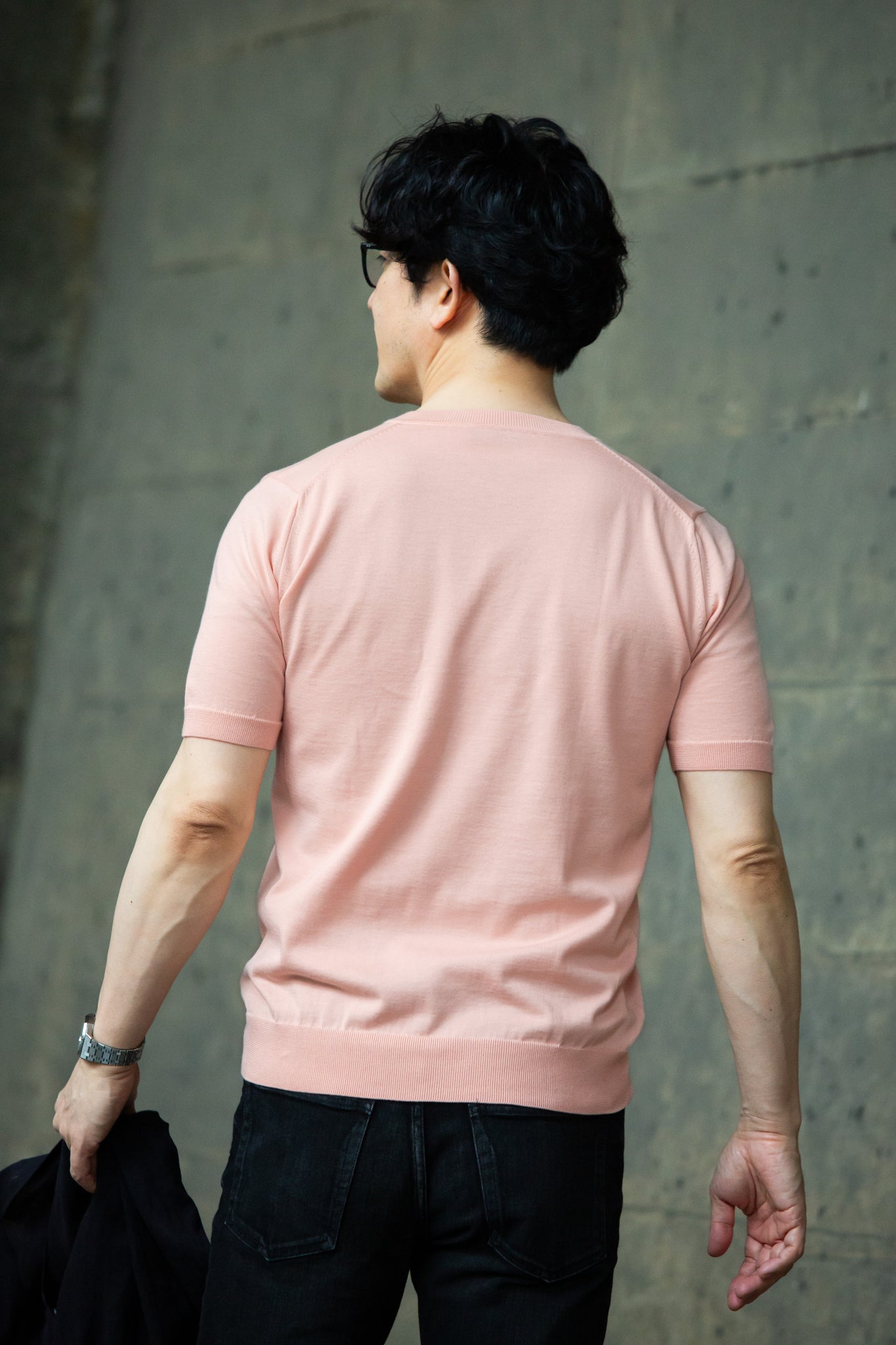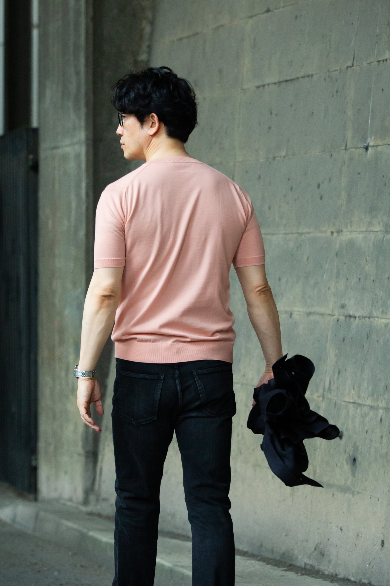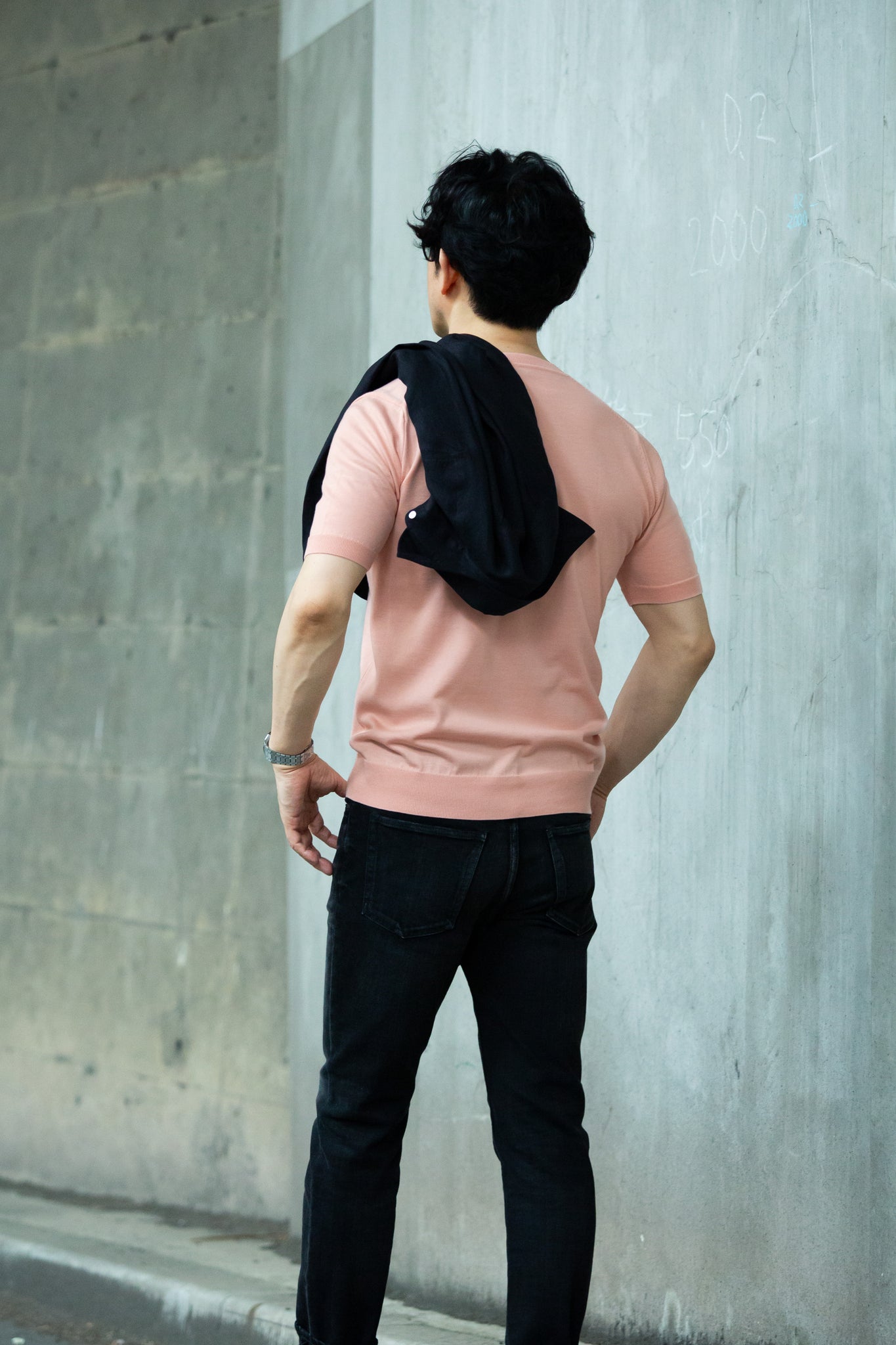 【生地:アメリカンシーアイランドコットン60/2】使用しているのは、世界でも限られた地域でしか栽培されない希少な超長綿、アメリカンシーアイランドコットン。その中でも、極細の「60番手」の糸を2本撚り合わせた“60/2(ろくまるにそう)”仕様に仕上げることで、薄く、軽やかで、しなやかなハリ感を備えた、まさにサマーニットの理想形を実現しました。
